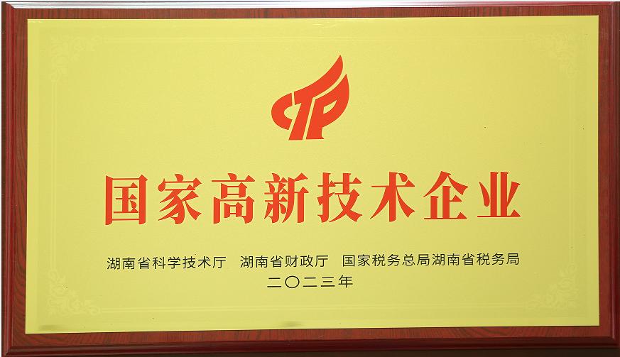 • 2023年12月被湖南省科學技術廳授予“國家高新技術企業(yè)”